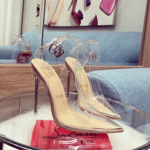 (Có sẵn) Sandal Louboutin mica êm trong suốt gót đỏ fullbox cao cấp
